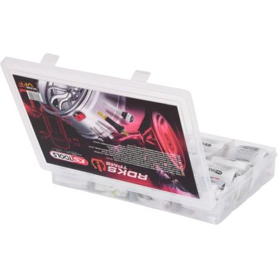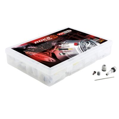 TPMS asortyment serwisowy do czujników ciśnienia, 142-sztsystems, 142 pcs•podczas każdej wymiany opon lub serwisowania opon należydokonać wymiany całego zestawu serwisowego wentyli sensora•składający się z wkładki i zakrętki wentyla, podkładki iuszczelki oraz nakrętki i (częściowo) pierścieniamarkującego•pasuje do najpopularniejszych europejskich połączeń wentylii sensorów RDKS•dopasowywany na podstawie oznaczeń producenta, modelu orazroku•zawiera wszystkie niezbędne do naprawy części•pasuje do felg ze stali lub alufelg•w trwałej walizce z tworzywa sztucznego