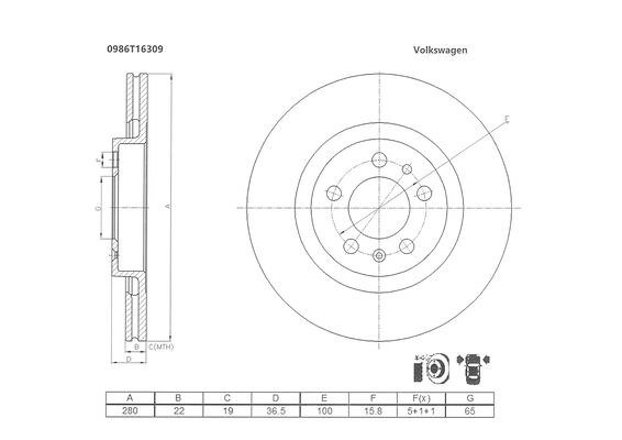 Typ tarczy hamulcowej | wentylowany |
