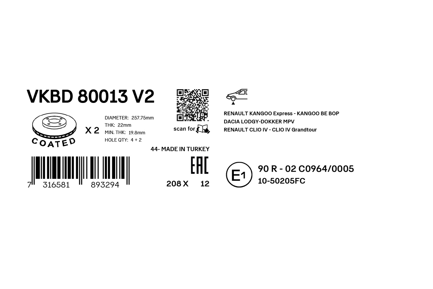 RENAULT: CLIO IV (BH_) (2012-11 » 2021-08), CLIO IV Furgon/hatchback (BH_) (2014-01 » 2021-08), CLIO IV Furgon/kombi (KH_) (2013-01 » 2021-08), CLIO IV Grandtour (KH_) (2012-11 » 2021-08), CLIO V (B7_) (2019-06 » ), KANGOO / GRAND KANGOO II (KW0/1_) (2008-02 » ), KANGOO BE BOP (KW0/1_) (2009-02 » ), KANGOO Express (FW0/1_) (2008-02 » ), LODGY (JS_) (2013-07 » ), ZOE (BFM_) (2012-06 » )