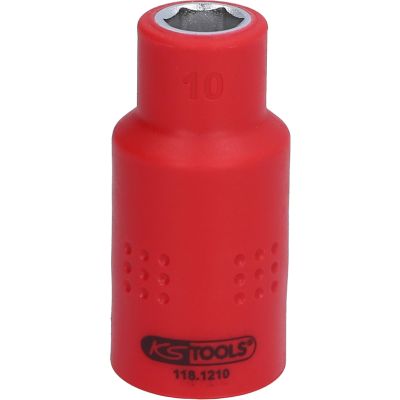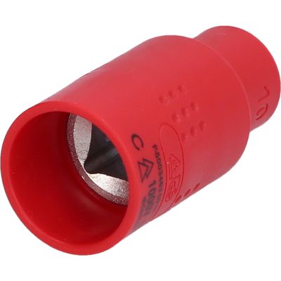 1/2" gniazdo izolowane, 10mm•6-kątny•profil FlankTraction•zgodne z normą DIN 7448•izolacja zgodna z IEC 60900•wewnętrzna nakładka czterokątna zgodna z DIN 3120 / ISO1174 z blokadą kulkową•chrom-wanad