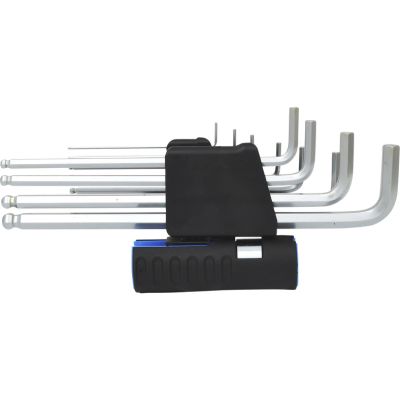 3 in 1 Zestaw katowych kluczy oczk. z glowica kulkowa,10-szt, 5/64"-9/16"•model długi•zgodny z DIN / ISO 2936•cal•z kulistą główką na dłuższej końcówce•szczególnie polecany do zastosowania do trudno dostępnychśrub•hartowany na całej długości•Uchwyt z podwójną funkcją (Uchwyt / uchwyt w kształcie T)•mat chromowany•specjalna stal narzędziowa•w stabilnym składanym uchwycie z uchwytem 2-częściowym