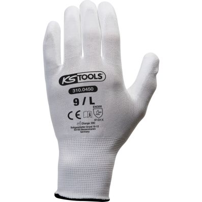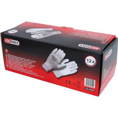 Rekawice - biale, 9, 12 para•CE / EN 388 [4131X]•bardzo wygodne dopasowanie•wyjątkowo przewiewne•z powłoką PU od spodu•bardzo dobrze nadają się do prac z małymi elementami•z logo