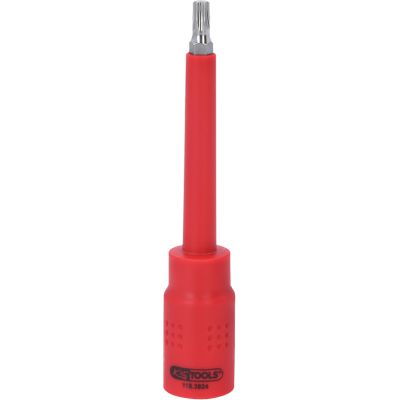 3/8" Izolowane gniazdo bitowe Torx, T27, 122mm•Torx•izolacja powierzchniowa zgodna z IEC 60900•wewnętrzna nakładka czterokątna zgodna z DIN 3120 / ISO1174 z blokadą kulkową•oksydowany•chrom-wanad
