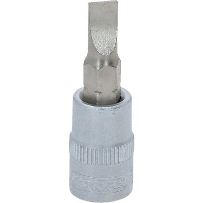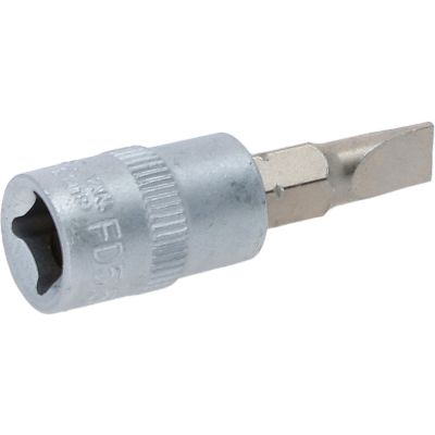 Gniazdo bitu dla wkretów z rowkiem, 5,5mm, 1/4"•płaski•wewnętrzna nakładka czterokątna zgodna z DIN 3120 / ISO1174 z blokadą kulkową•z wciskanym, niklowanym wkładem bitowym•do obsługi ręcznej•mat satynowany•chrom-wanad