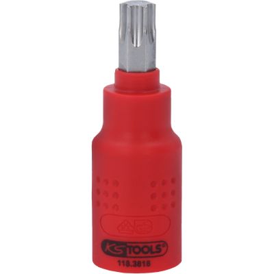 3/8" Izolowane gniazdo bitowe Torx, T50, 60mm•Torx•izolacja powierzchniowa zgodna z IEC 60900•wewnętrzna nakładka czterokątna zgodna z DIN 3120 / ISO1174 z blokadą kulkową•oksydowany•chrom-wanad