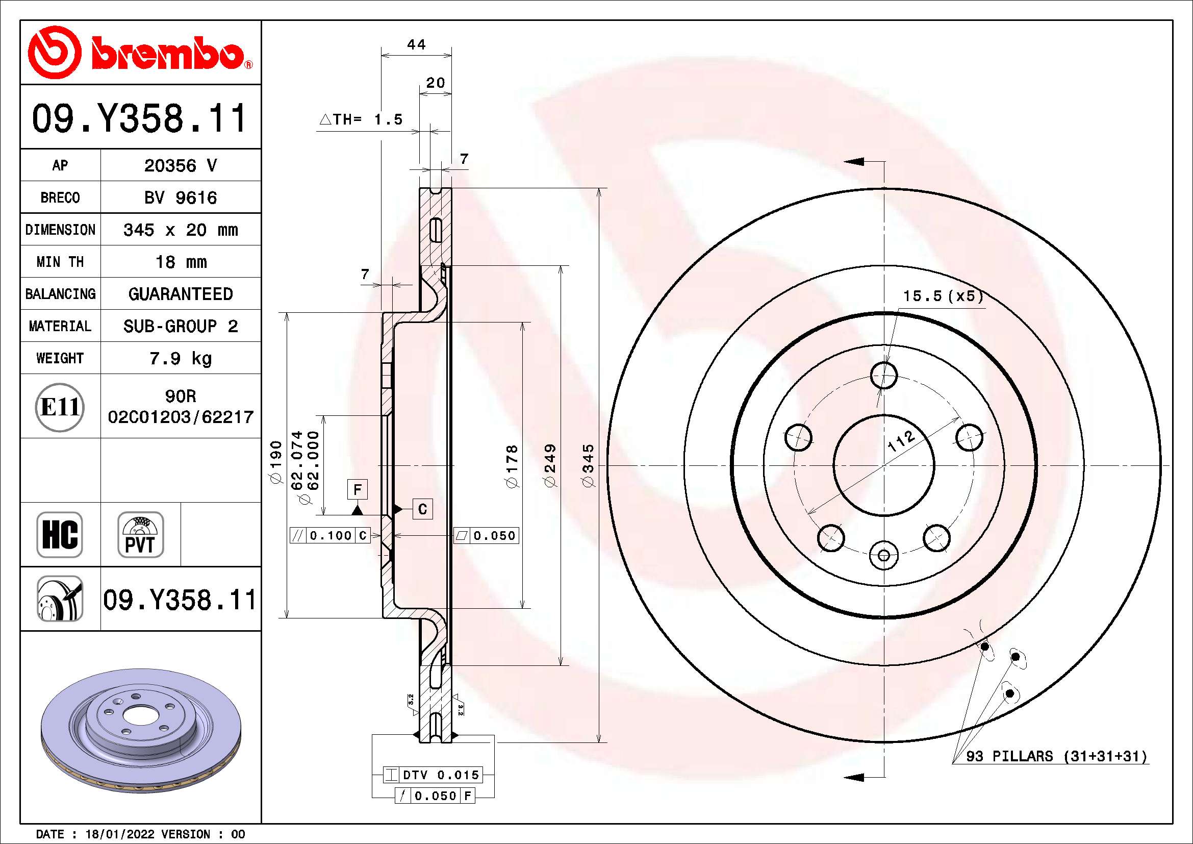 000| Typ tarczy hamulcowej | z wentylacją wewnętrzną |