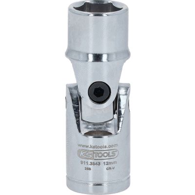 CHROMEplus Gniazdo szesciokatne z przegubem, 12mm, 3/8"•6-kątny•profil FlankTraction•wewnętrzna nakładka czterokątna zgodna z DIN 3120 / ISO1174 z blokadą kulkową•przegub mocowany przy pomocy śrub•do obsługi ręcznej•chromowany na wysoki połysk•chrom-wanad