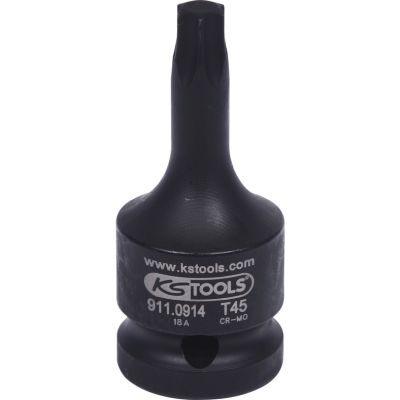 1/2" Gniazdo udarowe bitów dla śrub Torx, krótki, T 45•Torx•nakrętka czworokątna zgodna z DIN 3121 / ISO 1174•model krótki•dla obsługi maszynowej•fosfatowane•chrom - molibden