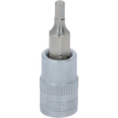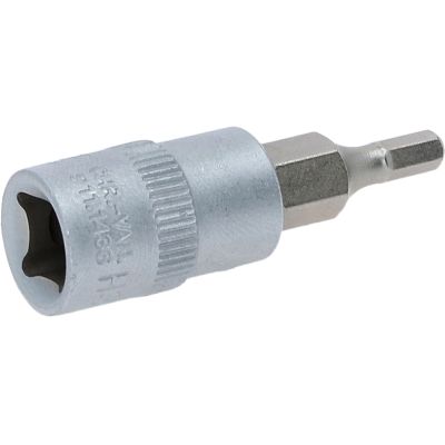 Gniazdo bitu dla srub z lbem walcowymo gniezdzieszesciokatnym, 3mm, 1/4"•Gniazdo sześciokątne•zgodne z DIN 7422•wewnętrzna nakładka czterokątna zgodna z DIN 3120 / ISO1174 z blokadą kulkową•z wciskanym, niklowanym wkładem bitowym•do obsługi ręcznej•mat satynowany•chrom-wanad