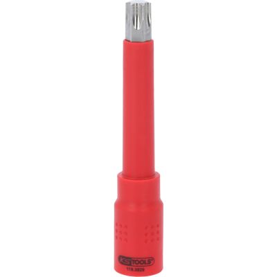 3/8" Izolowane gniazdo bitowe Torx, T55, 122mm•Torx•izolacja powierzchniowa zgodna z IEC 60900•wewnętrzna nakładka czterokątna zgodna z DIN 3120 / ISO1174 z blokadą kulkową•oksydowany•chrom-wanad