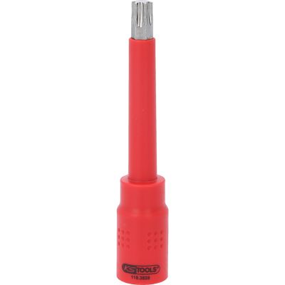 3/8" Izolowane gniazdo bitowe Torx, T50, 122mm•Torx•izolacja powierzchniowa zgodna z IEC 60900•wewnętrzna nakładka czterokątna zgodna z DIN 3120 / ISO1174 z blokadą kulkową•oksydowany•chrom-wanad