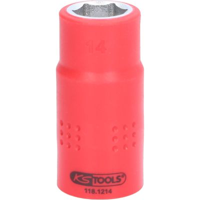 1/2" gniazdo izolowane, 14mm•6-kątny•profil FlankTraction•zgodne z normą DIN 7448•izolacja zgodna z IEC 60900•wewnętrzna nakładka czterokątna zgodna z DIN 3120 / ISO1174 z blokadą kulkową•chrom-wanad