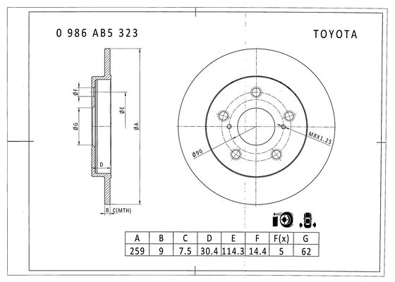 (259x9mm) Auris 1,4-1,6VVTi , 1,4D-4D japończyk