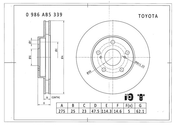 | Grubość tarczy hamulcowej [mm] | 25 |