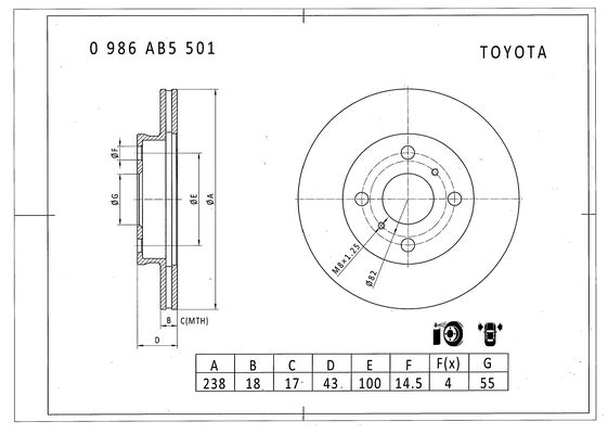 (238x18mm) TOYOTA STARLET (EP91) 04/96-03/99 STARLET (_P8_) 12/89-03/96