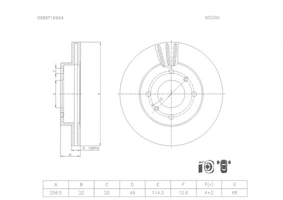 NISSAN PRIMERA P10 +ABS 90->,P11 1.6,2.0D 96->, W10 KOMBI,200SX S13 88->91 (256 MM / WENTYLOWANA.)