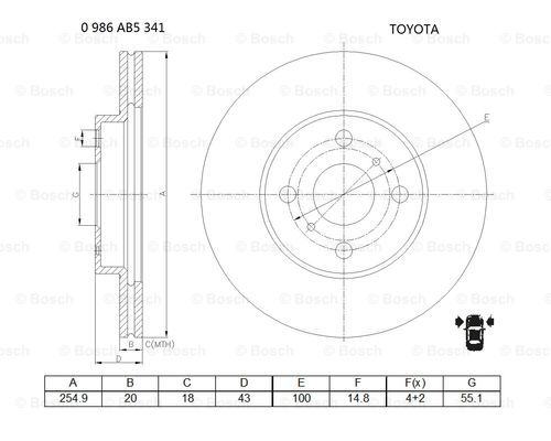 TOYOTA MR2 1.8I 16V 99.12->,YARIS (J)+ABS 99->,YARIS (F) 01-> (255MM/WENTYLOWANA)