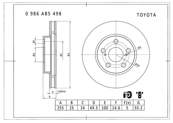 CELICA 1.8I 16V (AT200) 94-> (255 MM / WENTYLOWANA) PRZEDNIA