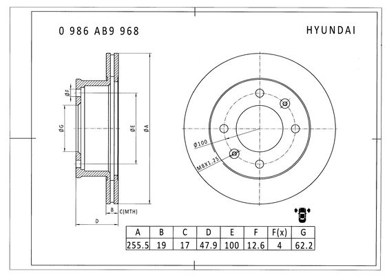(256x19mm) Getz (TB) 1,1-1,6 09.02- (+ABS)