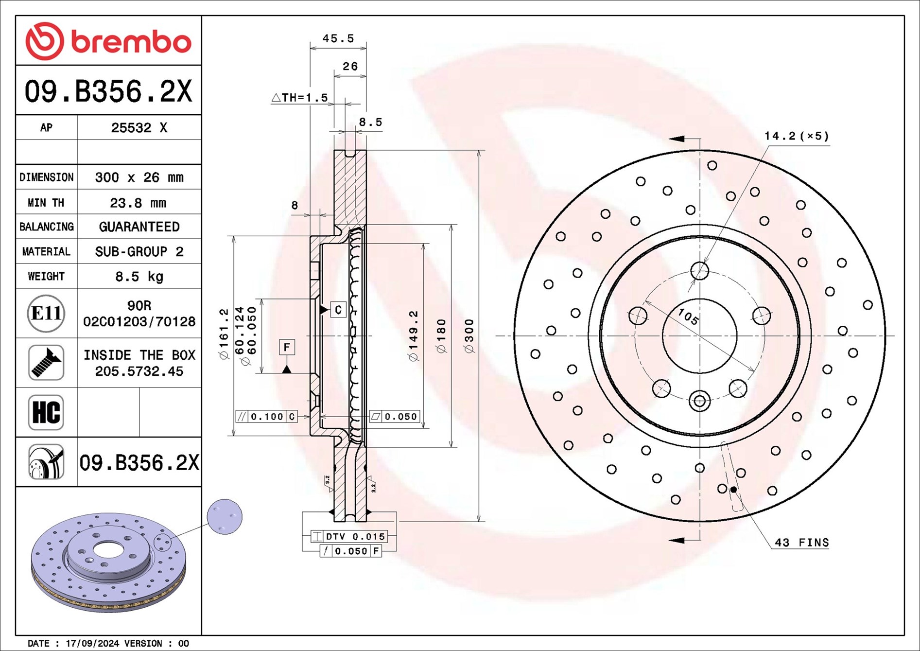 00| Typ tarczy hamulcowej | z wentylacją wewnętrzną |