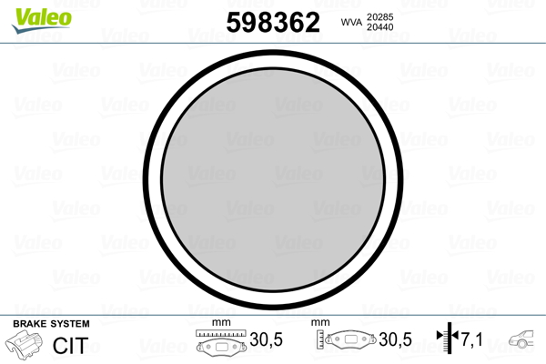 598362_VALZESTAW OKŁADZIN HAMULCOWYCH, HAMULEC POSTOJOWY TARCZOWY